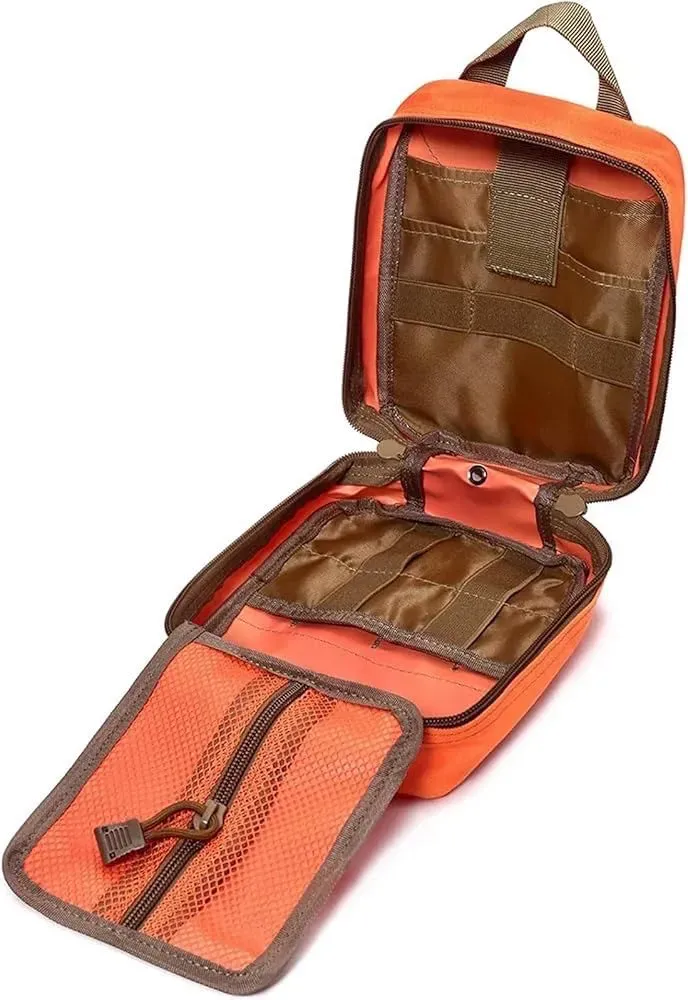 Los compartimentos espaciosos incluyen varios bolsillos, fuertes presillas elásticas y porta instrumentos y un compartimento de malla con cierre para pequeños suministros de primeros auxilios.